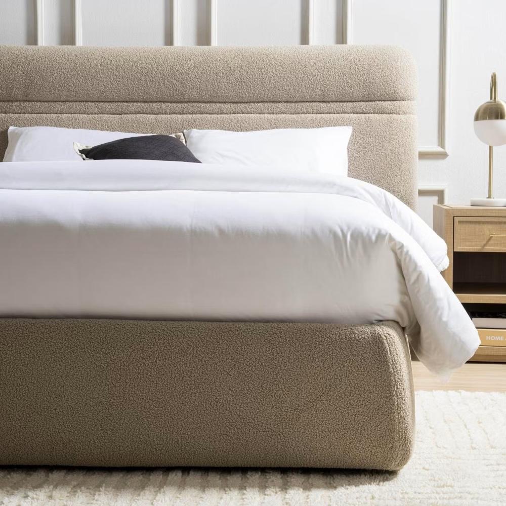 اجعل كل ليلة هادئة ومريحة مع سرير نوم مودرن أوسيس بوكليه - بيج من دهليز، حيث الجودة والتصميم الفاخر من دهليز للاثاث.