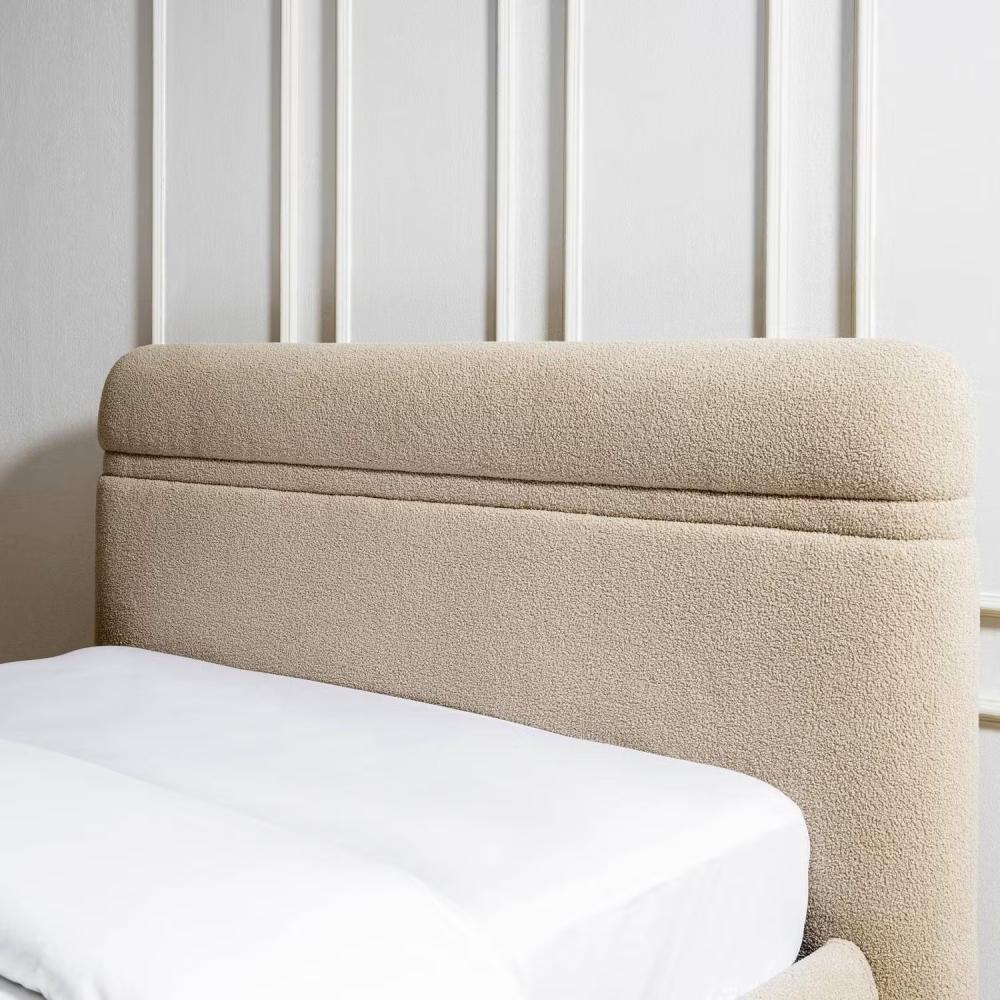 - قماش بوكليه بيج يمنح السرير مظهراً مميزاً وأنيقاً يناسب مختلف الديكورات.
